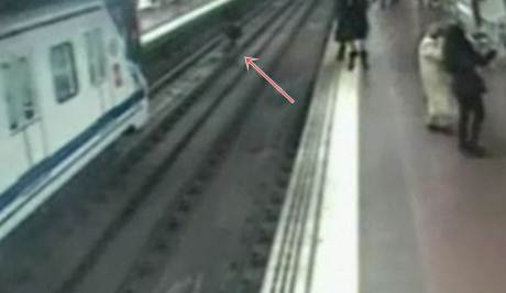 Imagens do circuito interno de segurança do metrô de Madri, divulgadas pela polícia espanhola, mostram o dramático resgate de um homem que caiu sobre os trilhos na estação Puerta del Angel.
