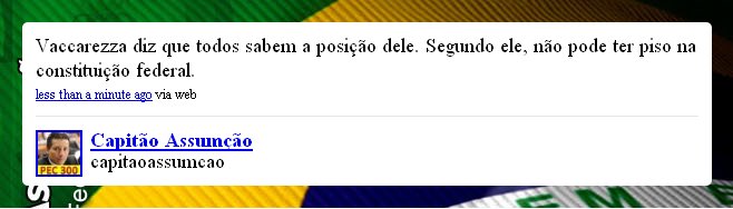 Durante a reunião, convocada para tratar da pauta de votações da casa, o deputado Capitão Assumção (PSB-ES) publicou mais de 40 mensagens no Twitter. Elas registravam as opiniões dos líderes partidários sobre uma proposta de emenda constituicional que cria piso salarial para policiais civis e militar